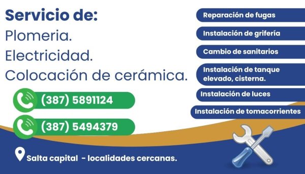 📍 Plomería, electricidad y colocación de cerámica en Ciudad de Salta – atención a domicilio en capital y zonas cercanas. 🔧⚡🧱
